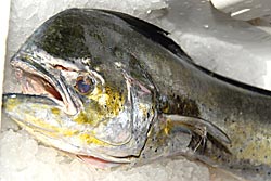 Große Goldmakrele; engl. Dolphinfish; frz. Coryphène; ital. Lampuga, Corifena; span. Dorado, Perico, Lampuga; jap. Shiira
